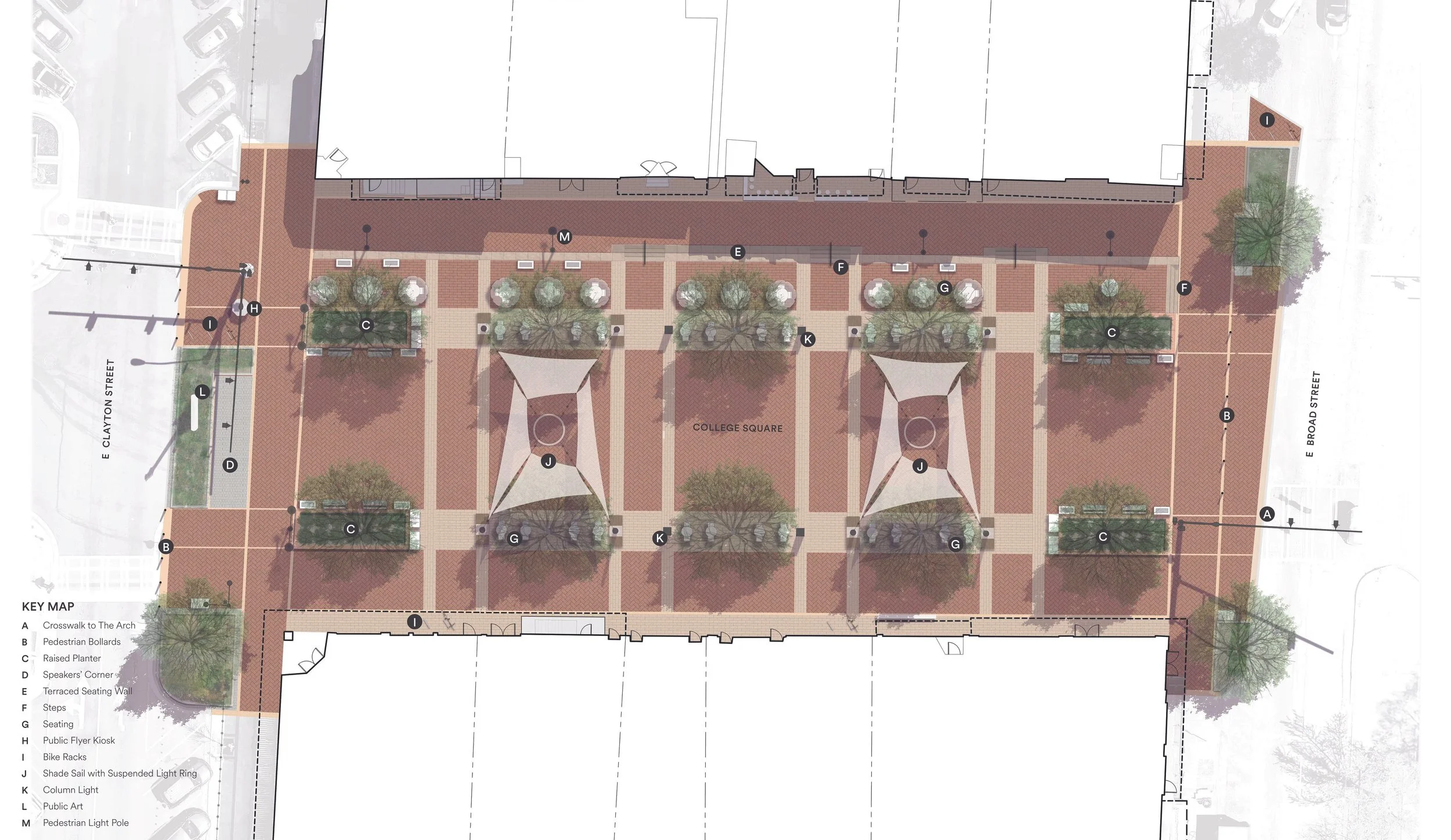 The transformation of College Square will yield a pedestrian-friendly public open space that supports the vitality of downtown and fosters a strong connection between the University of Georgia and the city of Athens.